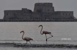 Τα φοινικόπτερα σταμάτησαν για λίγο το ταξίδι τους και ξεκουράστηκαν στον πλούσιο σε τροφή Υδροβιότοπο της Αργολίδας.