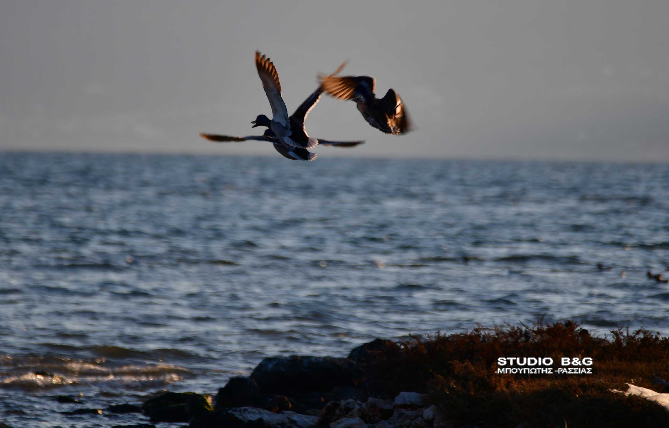 Πτηνά πετούν στον Υδροβιότοπο μεταξύ